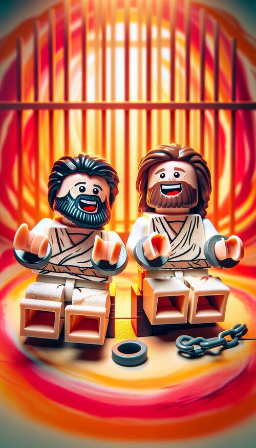 Paul and Silas were friends who loved Jesus very much. One day, some people didn’t like what they were teaching. They made them go to jail! Even though they were hurt and locked up, Paul and Silas prayed and sang songs to God. While they sang, a big earthquake shook the jail, and all the doors opened! The jailer saw this and was amazed. Paul and Silas told him about Jesus, and he decided to follow Jesus too. Everyone in the jailer’s family believed and got baptized. Paul and Silas stayed brave and happy because they trusted God no matter what.