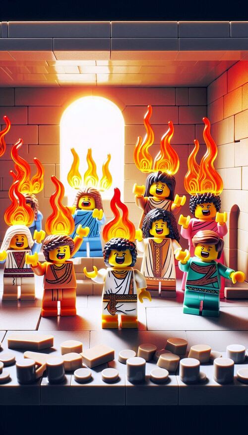 Pentecost is a very special day when God sent the Holy Spirit to Jesus’ friends after Jesus went back to heaven. The Holy Spirit came like a strong wind and little flames that looked like fire appeared above each person. The Holy Spirit gave them power and helped them speak in different languages so they could tell people everywhere about Jesus. It was like the birthday of the church because it was the start of Jesus’ followers telling everyone how much God loves them!