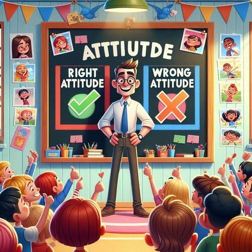 - Ask the children which column it belongs in: “Right Attitude” or “Wrong Attitude,” and why.