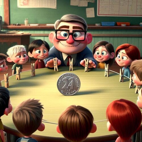 - At your signal, children must pass the coin around their circle using only clothespins—no hands touching the coin directly.