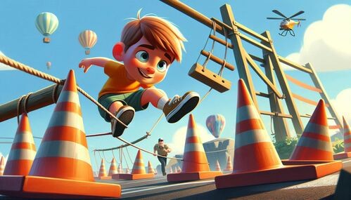 - Another child acts as a “guide”—using only words, not touch, to help them navigate the course.
