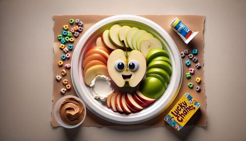 - Layer apple slices with sunflower seed butter or cream cheese, and top each with a star-shaped cereal (like Lucky Charms).