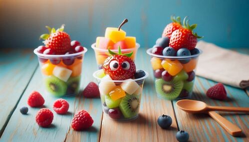 - Small cups with mixed fruits