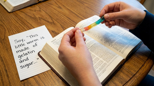 - Let’s see how far we can stretch this worm. (Stretch the worm using your hands.)