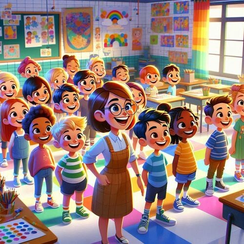 - Have the children stand in a line on one side of the room, all facing the same direction.