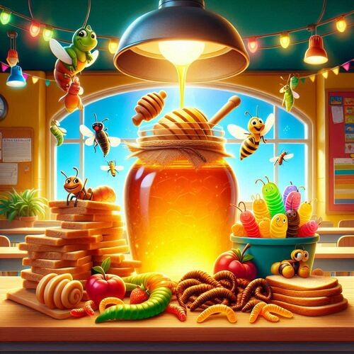- Place a small amount of honey on each child’s cracker or bread (and, if appropriate, a small edible insect or gummy worm beside it).
