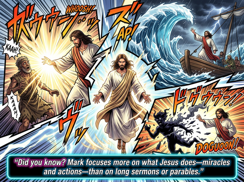 Did you know… Mark focuses more on what Jesus does (miracles, actions) than on long sermons or parables?