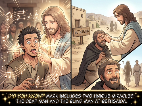 Did you know… Mark tells the story of Jesus healing a deaf man who could hardly talk, and a blind man at Bethsaida, in two unique miracles not found in the other Gospels?