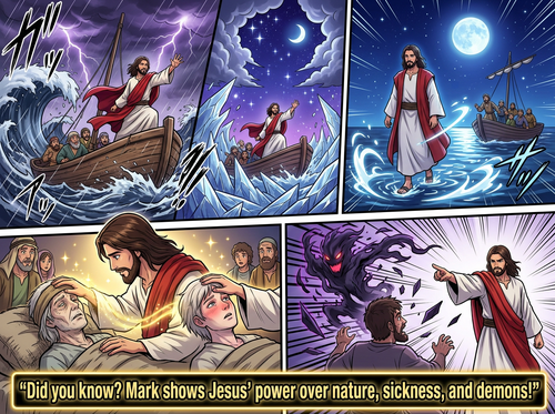 Did you know… Mark shows Jesus’ power over nature, like calming a storm and walking on water, as well as power over sickness and demons?
