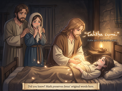 Did you know… Mark sometimes gives vivid little details others leave out, like Jesus’ Aramaic words “Talitha cumi” when raising Jairus’s daughter?